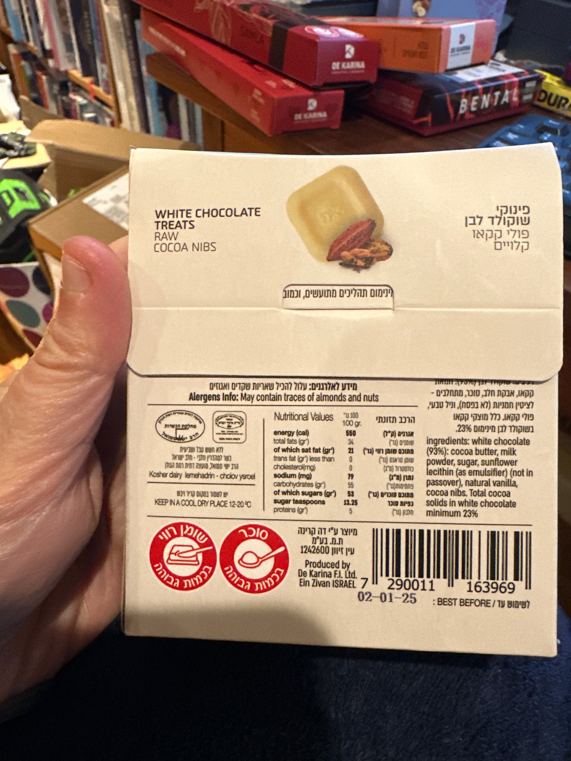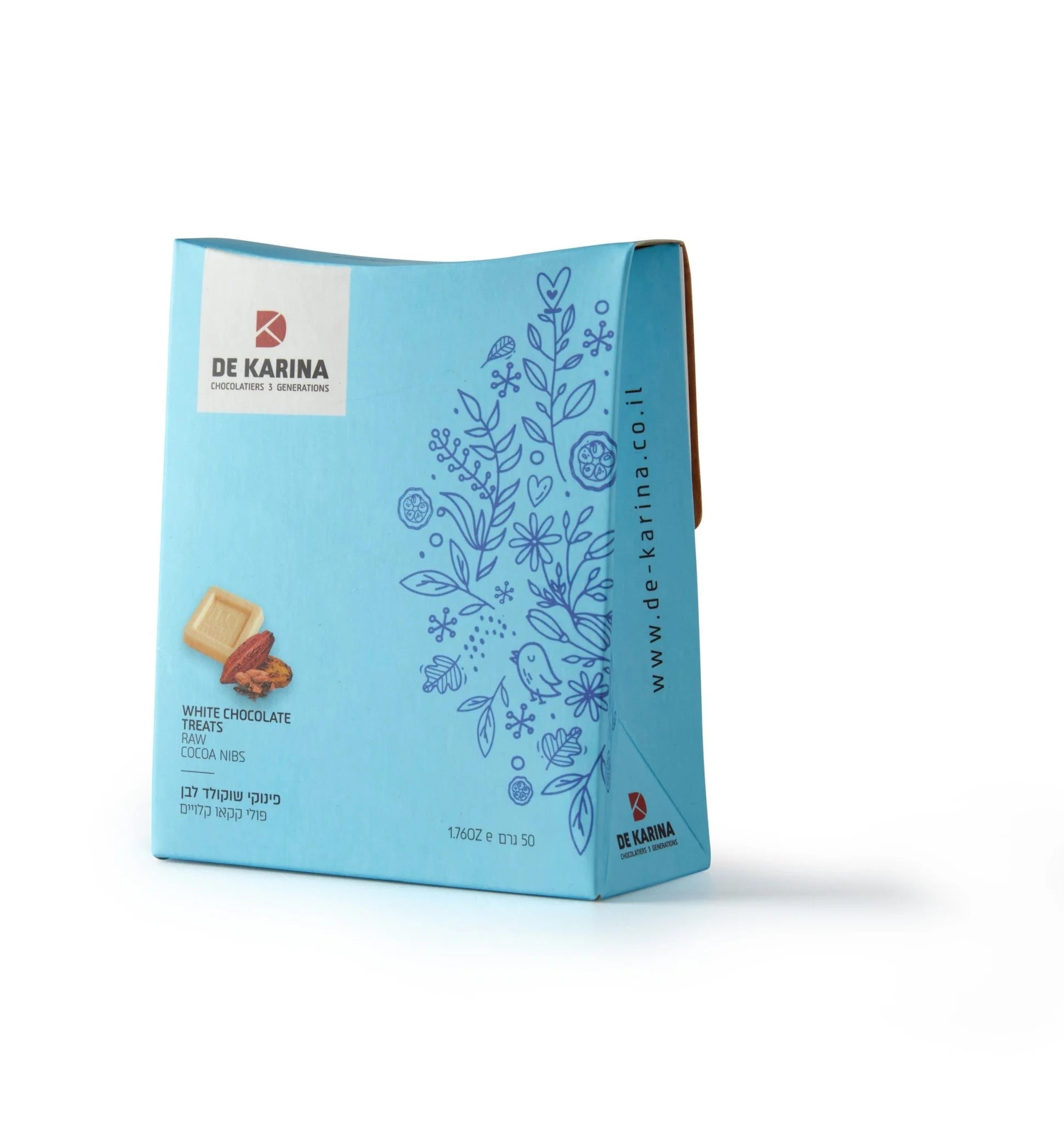 Made in Israel Dekarina White Chocolate Treats - Raw Cocoa Nibs - 50 grams