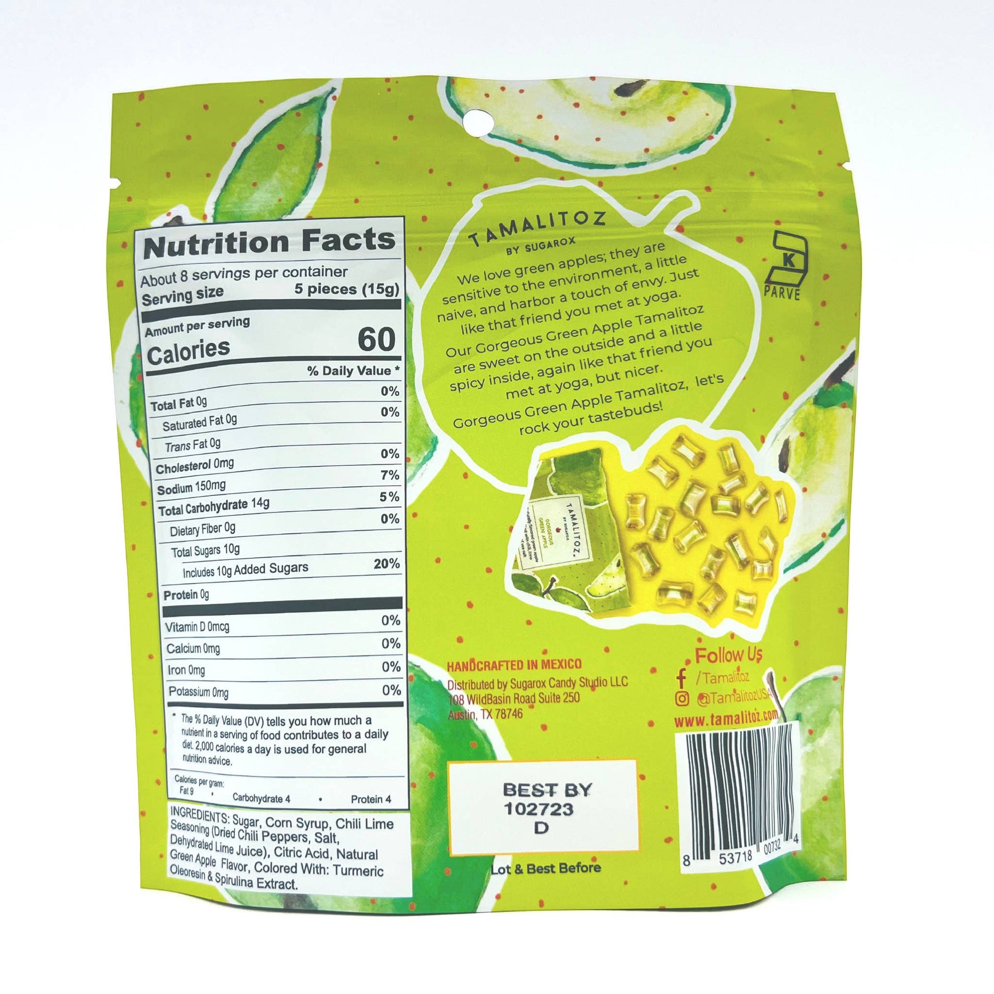 • Gluten Free. Green apple has been a candy lovers favorite for a while now but our Gorgeous Green Apple Tamalitoz is going to make them re think apple candy.