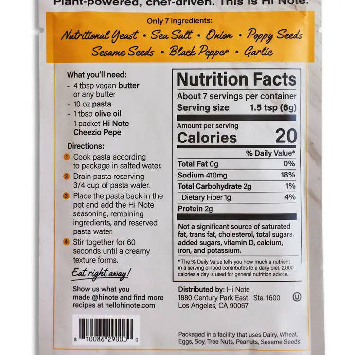 Hi Note started with a simple idea in mind: Cooking brings people together. Whether you’re putting dinner together on a busy weeknight, meal prepping for the week ahead, or gathering around the table on a perfectly slow Sunday, our plant-based seasoning packets help you make delicious, affordable, satisfying meals in a matter of minutes. And because Hi Note products are made with the best quality ingredients and are always free of shady chemicals and fillers, you can trust that the food you’re making is as healthy (or indulgent!) as you want it to be—it’s all up to you, Chef.