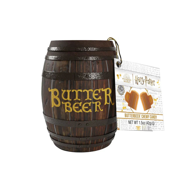 Served in the shape of a traditional Butterbeer glass, Harry Potter™ Butterbeer™ Chewy Candy looks and tastes just like the iconic drink from the Wizarding World™. This sweet treat comes in a small barrel tin detailed to look just like the barrels found in Hogsmeade™ and is sure to delight any Harry Potter fan!