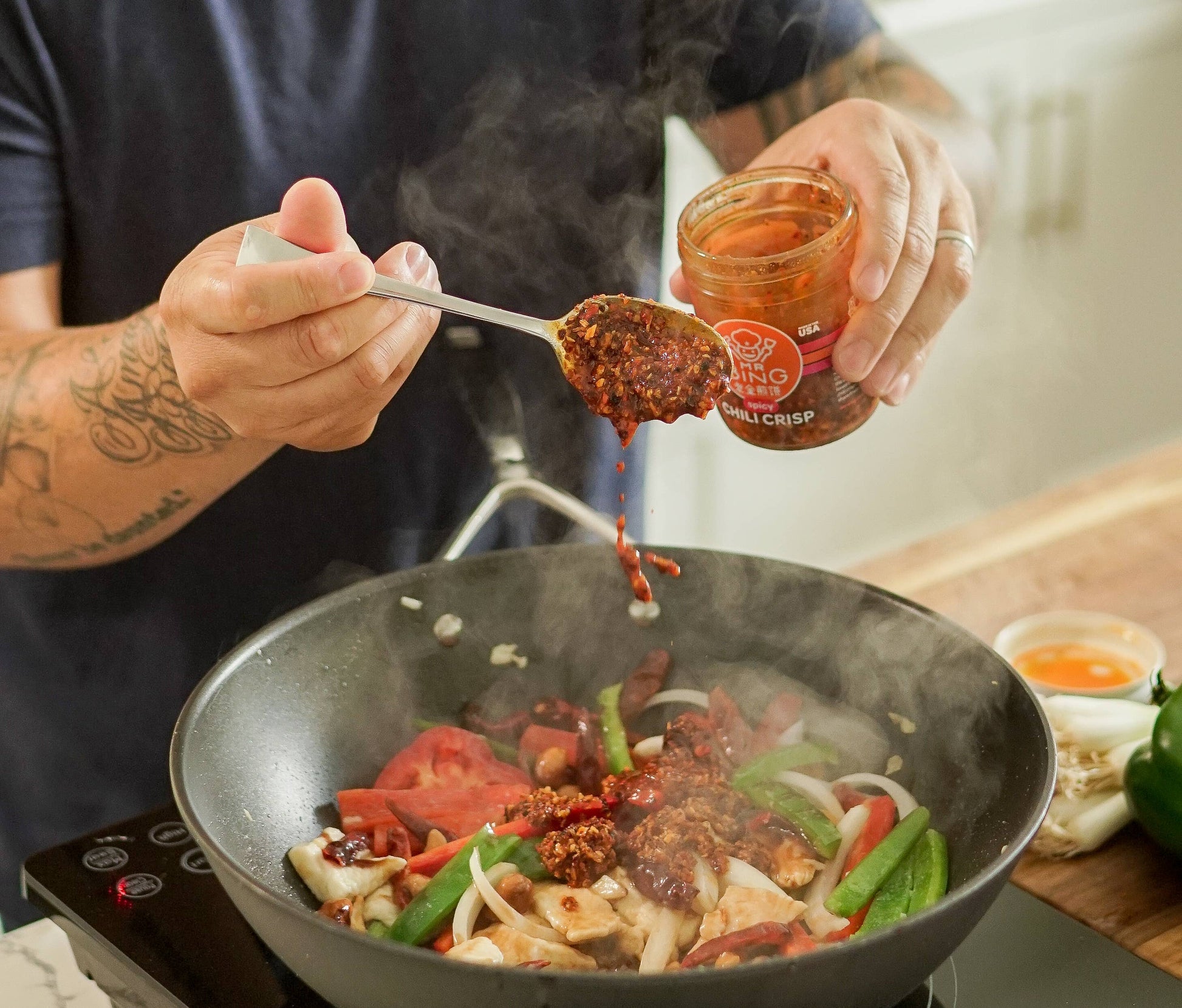 Our Chili Crisp works as both a condiment and cooking ingredient. Intensely flavorful, not-too-spicy, slightly sweet, and mouthwatering. Created using crunchy garlic and onions, our special fusion of chilies, mushroom powder, spices, and expeller pressed canola oil. Inspired by the most popular sauce in China, and made in the USA without preservatives or MSG. Allergen friendly (Top 9 FDA allergen free).