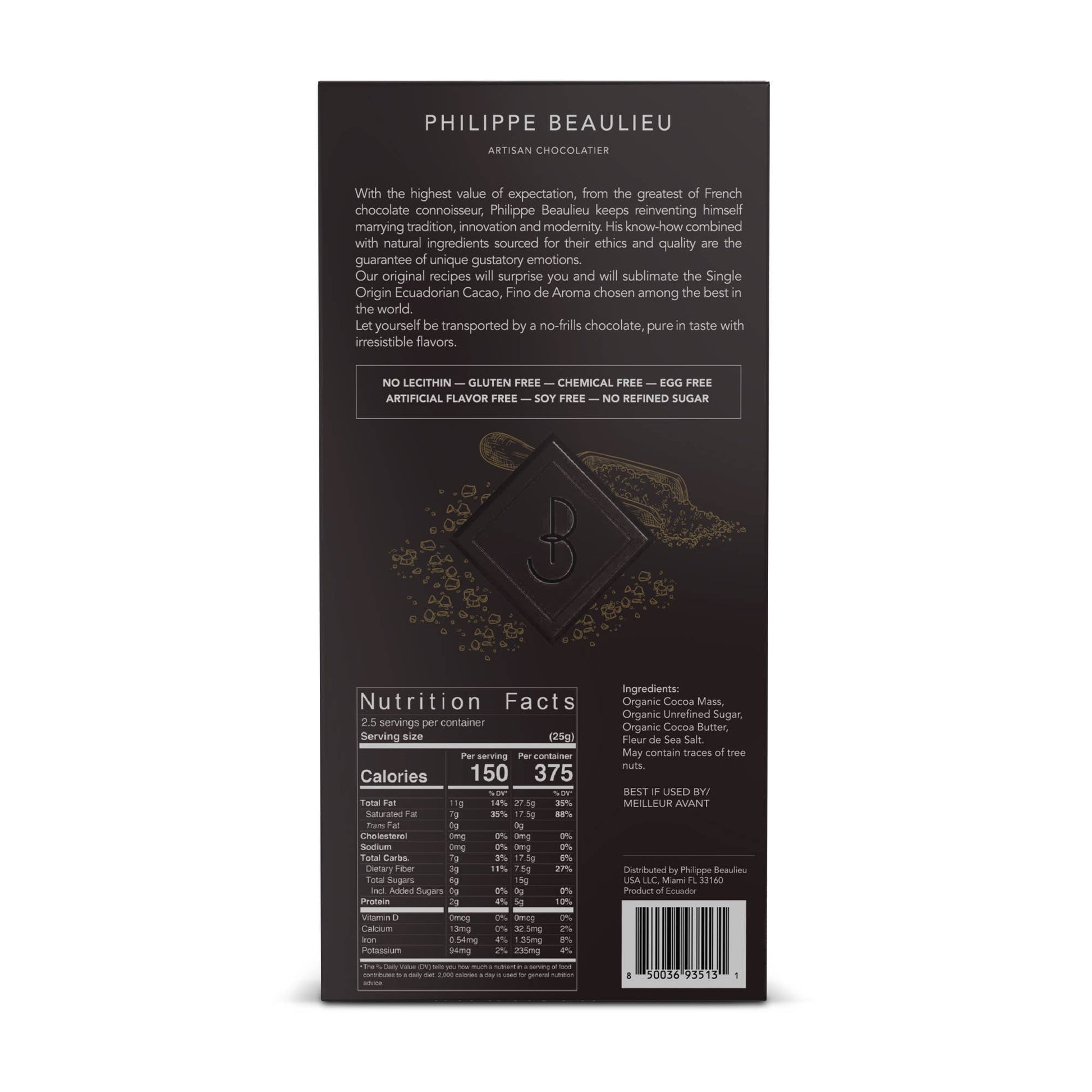 Philippe Beaulieu Artisan Chocolatier - 70% Dark chocolate bar Fleur de Sea Salt