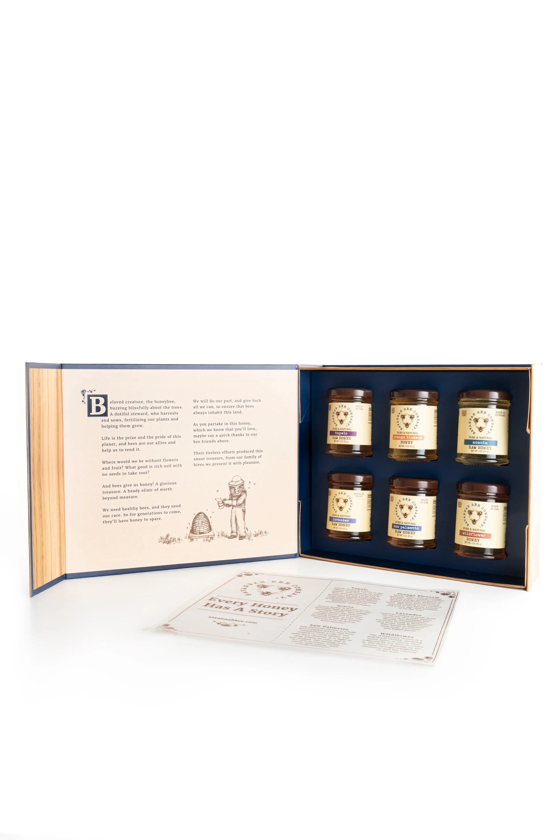 - The Book of Honey is a wonderful introduction to several varieties of honey. The six jars are sized to allow you to savour each honey and appreciate its unique taste and flavor differences.